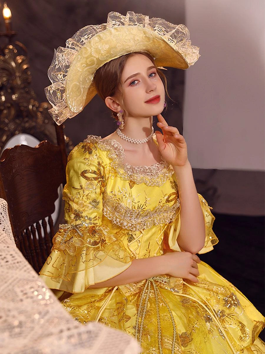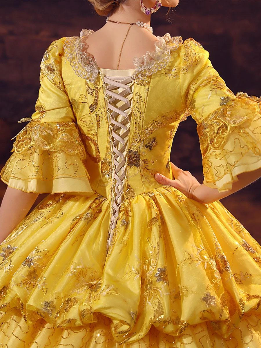Gold Retro Costumes Polyester Dress Marie Antoinette Costume Women’s Gothic Masquerade Ball Gown