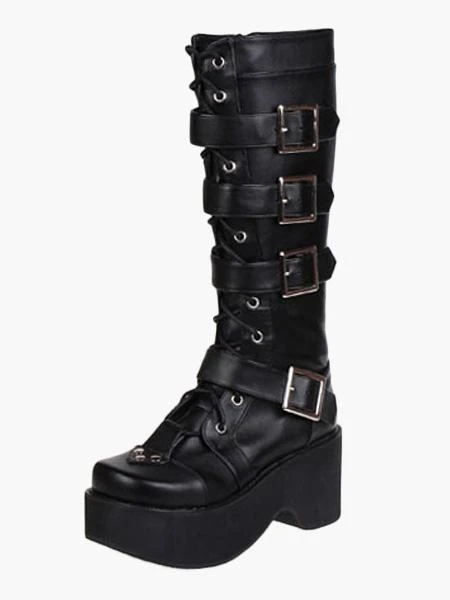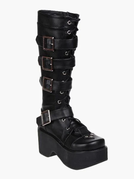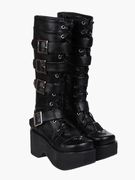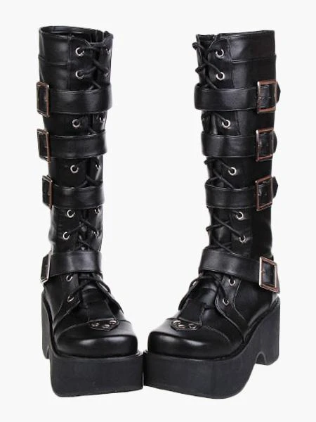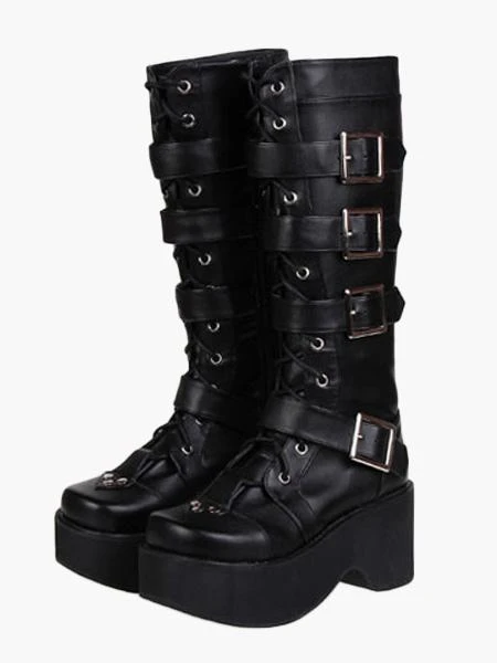 Gothic Black Lolita Boots Platform Shoes Buckles Shoelaces