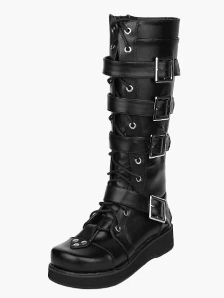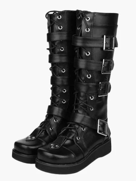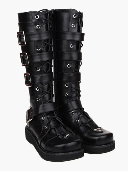 Gothic Black Lolita Boots Sraps Buckles Shoelace