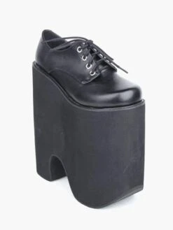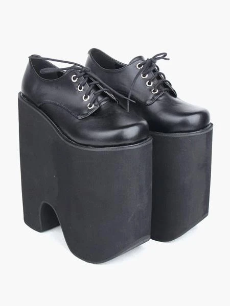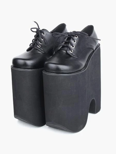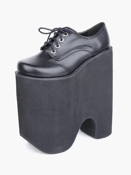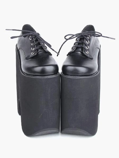 8.7” high heel black pu lolita pumps features front lace ties.