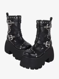 Be the first to review “Gothic Lolita Boots Black Grommets Metallic Round Toe PU Leather Lolita Footwear” Cancel reply