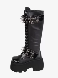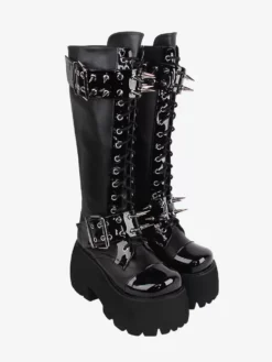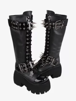 Be the first to review “Gothic Lolita Boots Black Grommets Rivets Metallic Round Toe PU Leather Lolita Footwear” Cancel reply