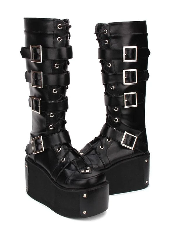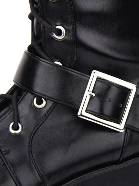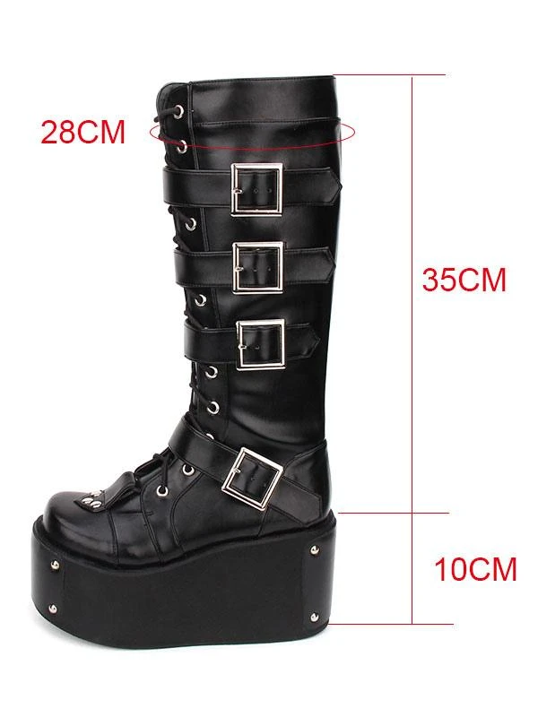 Gothic Lolita Boots Buckle Rivet Platform PU Black Lolita Footwear