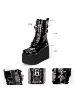 Gothic Lolita Boots Metallic Buckle Rivet Lace Up Zipper Platform Black Lolita Footwear