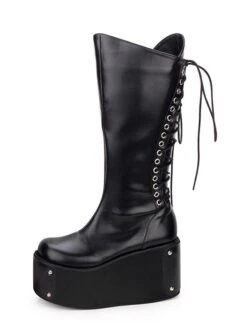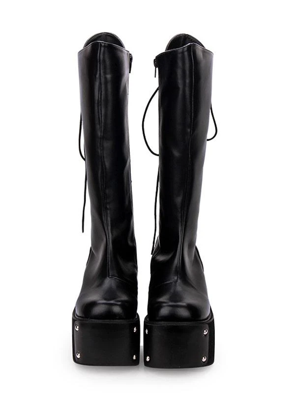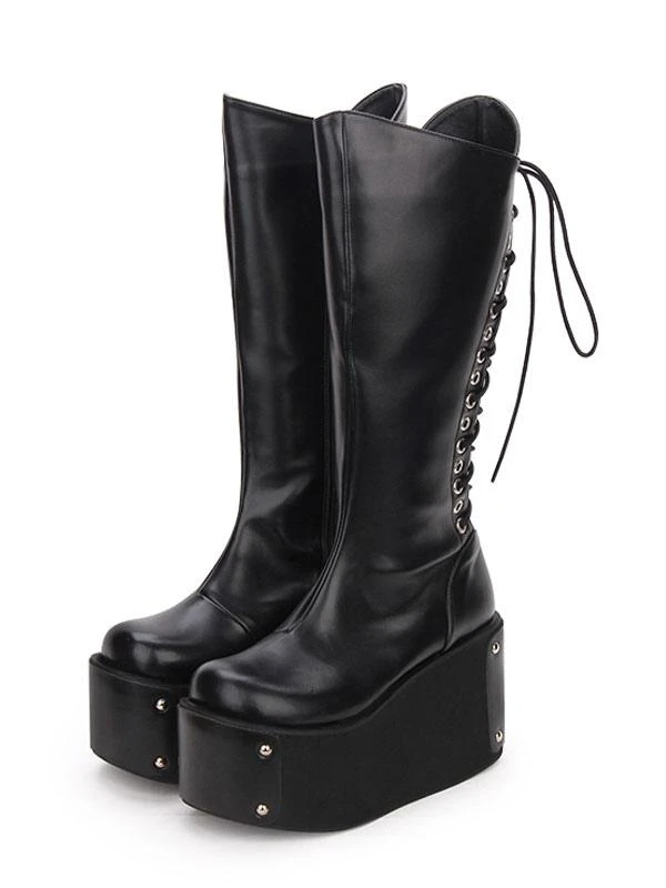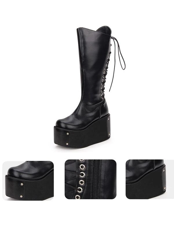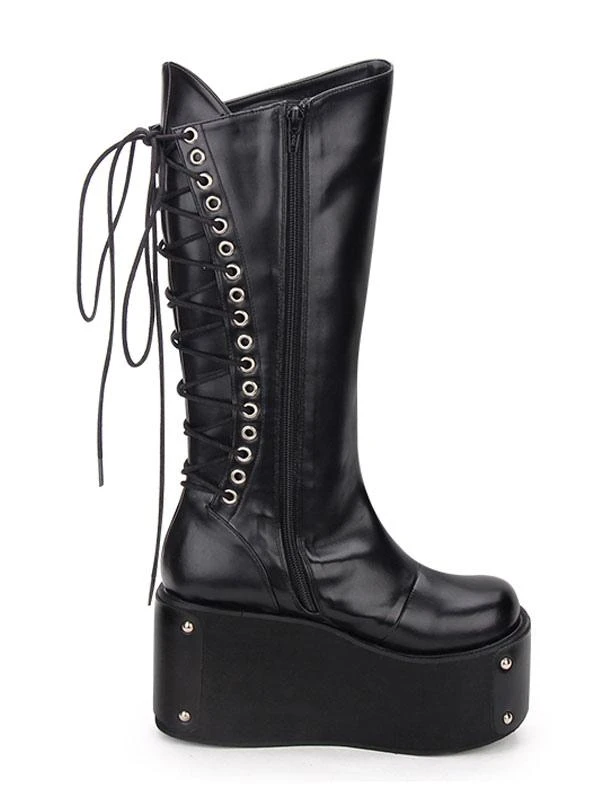 Gothic Lolita Boots Metallic Lace Up Zipper Platform Black Lolita Footwear