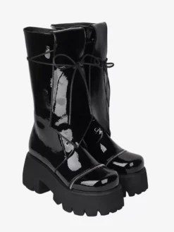 Be the first to review “Gothic Lolita Boots PU Leather Glitter Lace Up Round Toe Black Lolita Footwear” Cancel reply