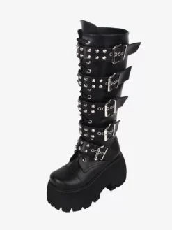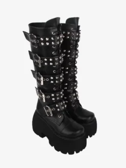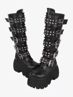 Be the first to review “Gothic Lolita Boots PU Leather Glitter Metallic Rivets Grommets Round Toe Black Lolita Footwear” Cancel reply