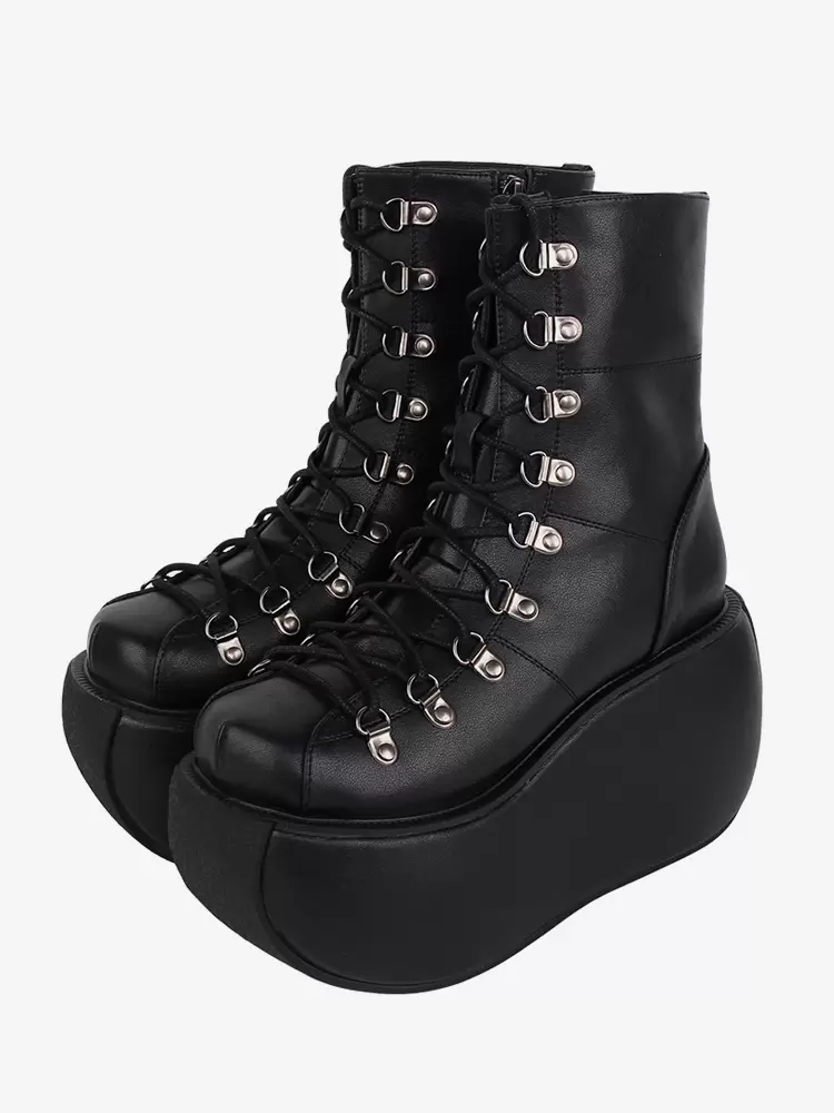 Gothic Lolita Boots PU Leather Metallic PU Round Toe Black Lolita Footwear