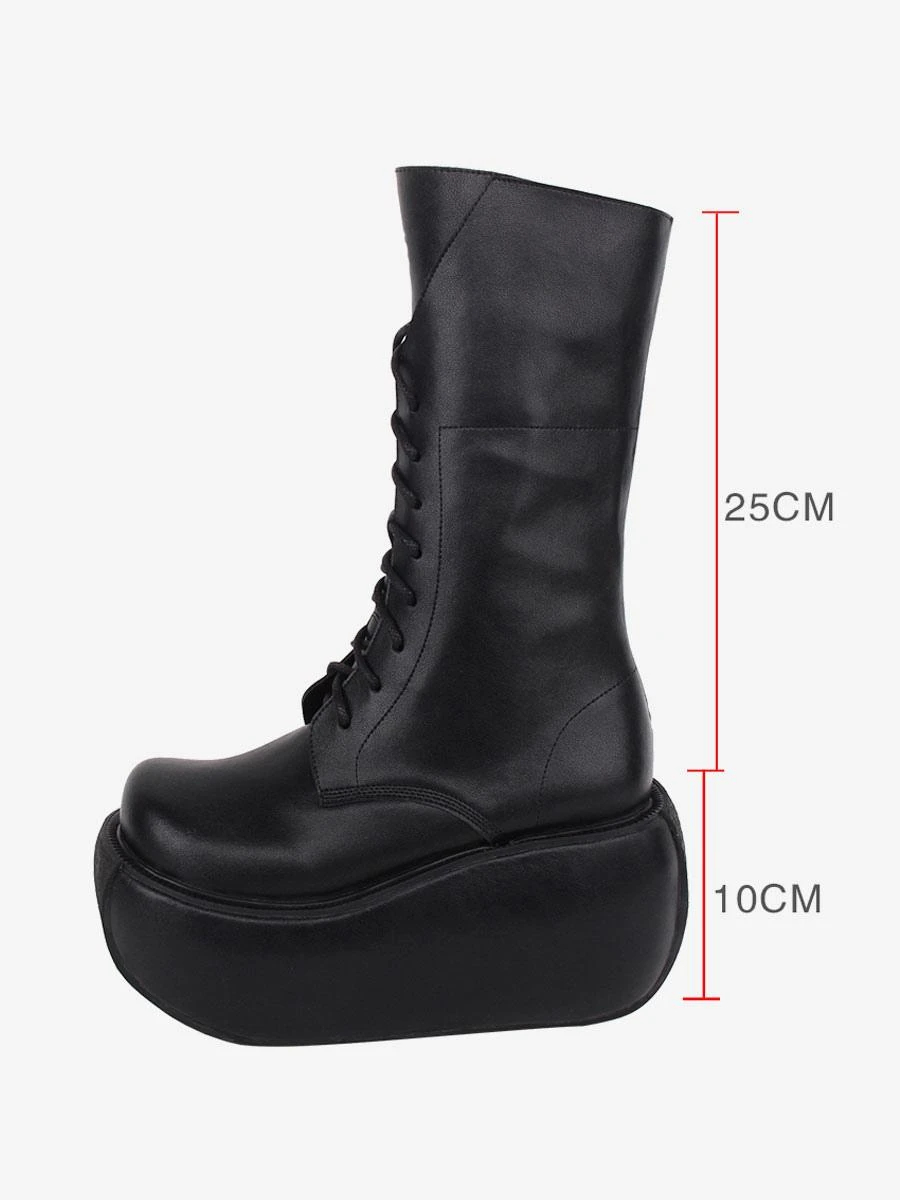 Gothic Lolita Boots PU Leather Round Toe Platform Black Lolita Footwear