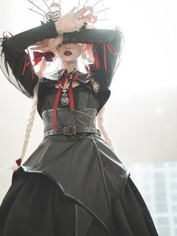 Gothic Lolita Coats Black Lace Up Polyester Overcoat Top Summer Lolita Outwears