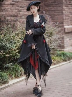 Gothic Lolita Coats Black Ruffles Polyester Overcoat Coat Fall Lolita Outwears