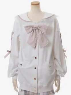 Gothic Lolita Coats White Ruffles Bows Polyester Overcoat Coat Fall Lolita Outwears
