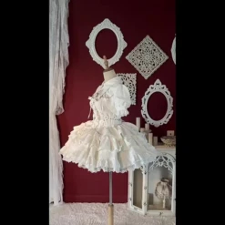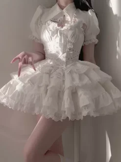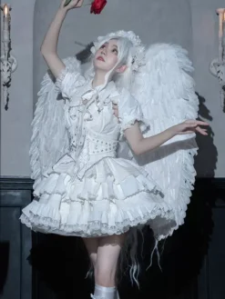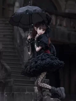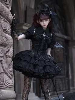 Gothic Lolita Dresses Chains Ruffles Cross Black Short Sleeves Lolita Dresses