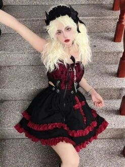 Be the first to review “Gothic Lolita Dresses Grommets Lace Red Red” Cancel reply
