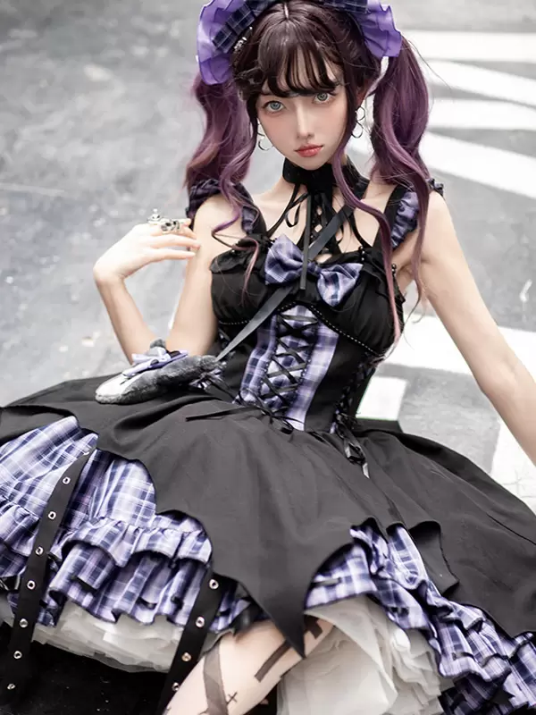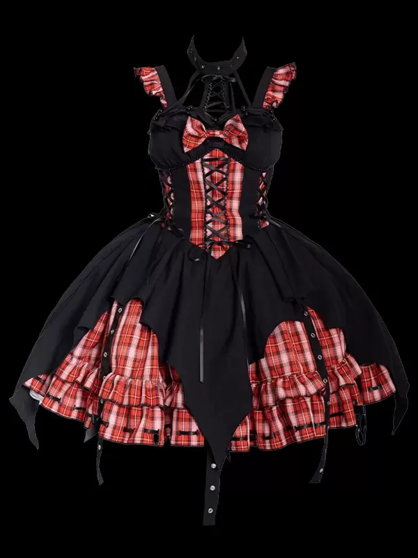 Be the first to review “Gothic Lolita Dresses Grommets Lace Up Plaid Black Red” Cancel reply