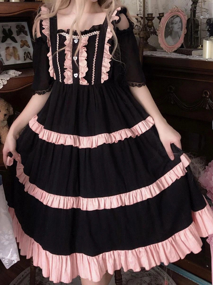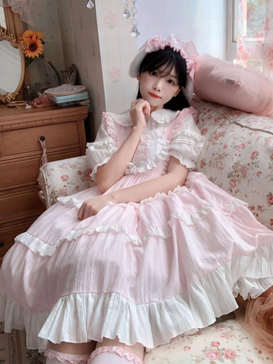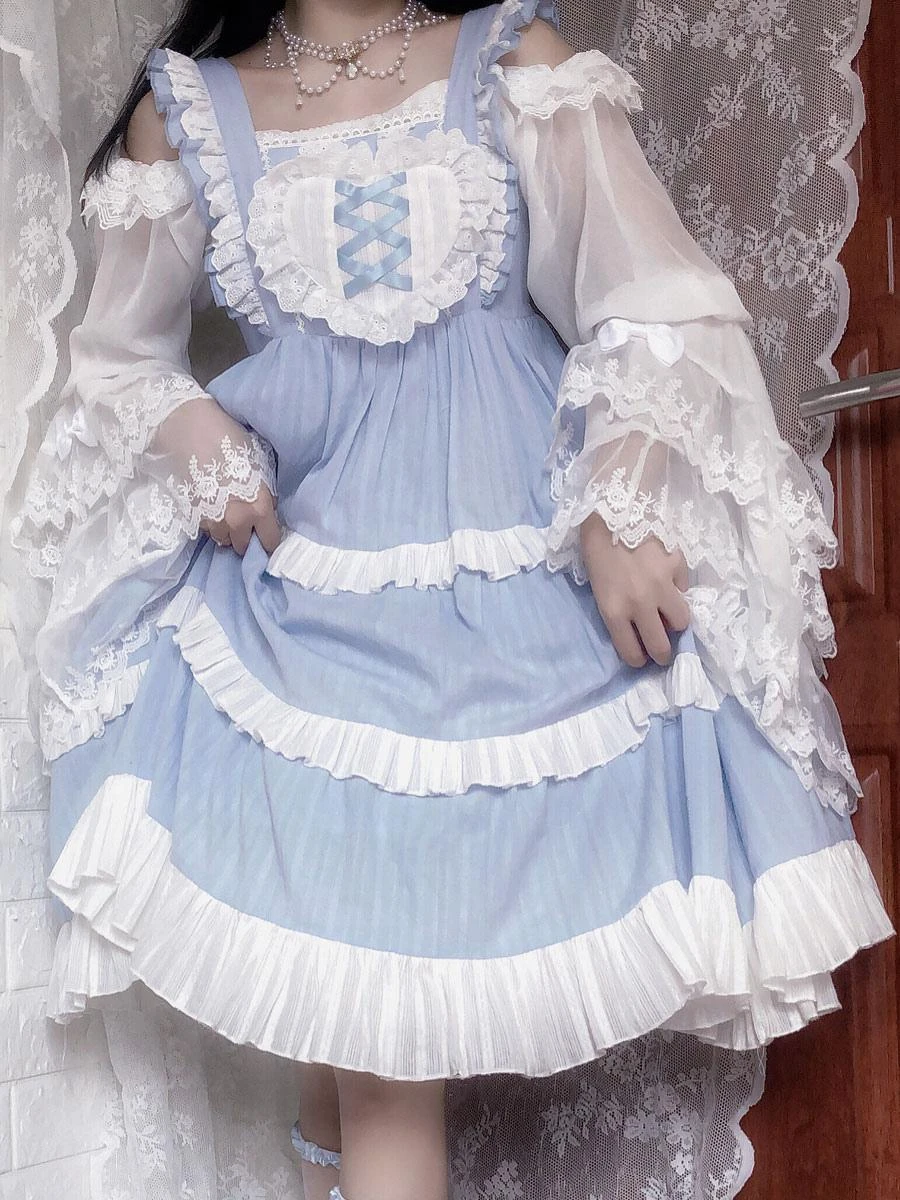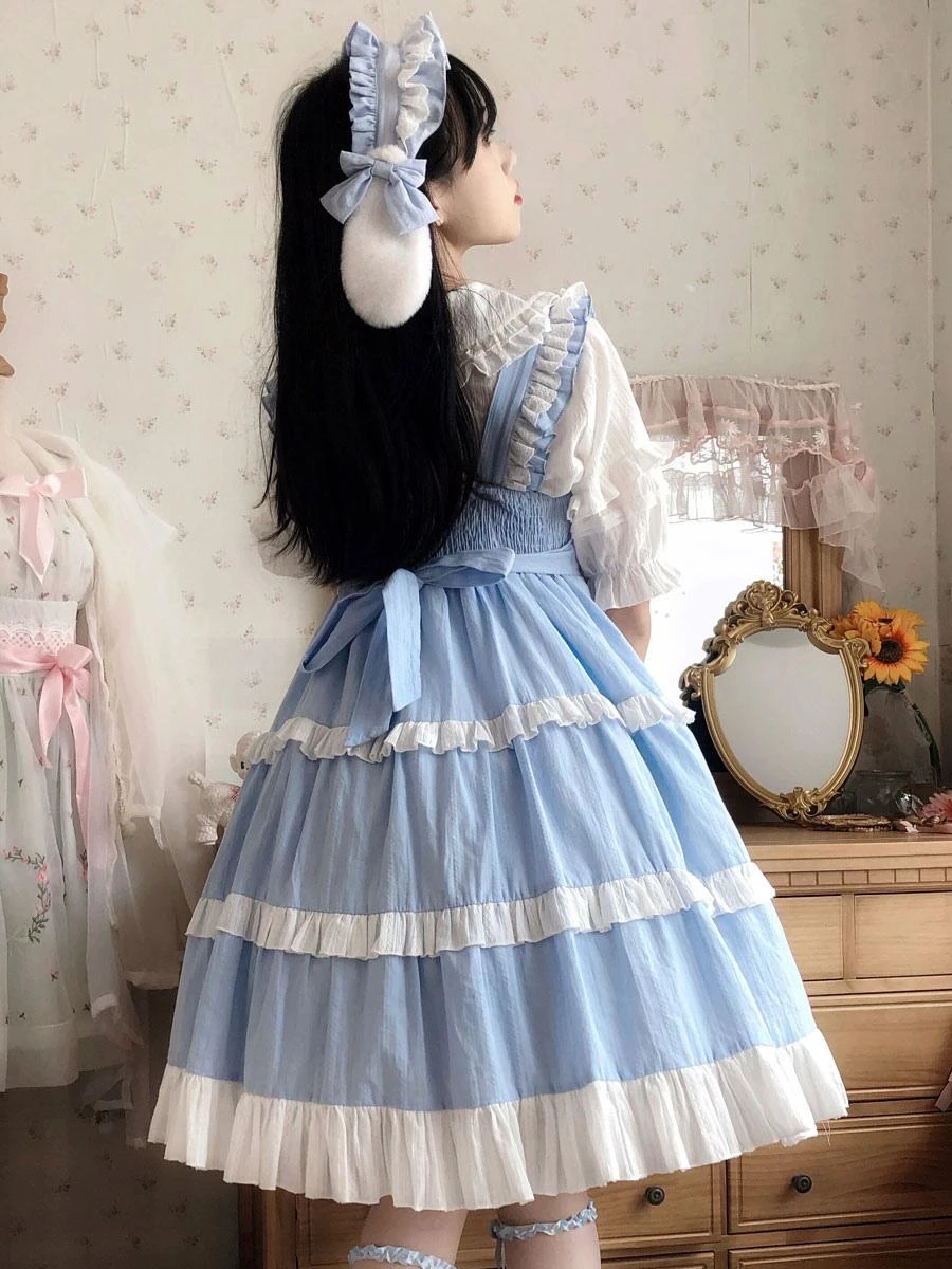 Gothic Lolita Dresses Ruffles Lace Light Sky Blue Pink Adjustable Elastic