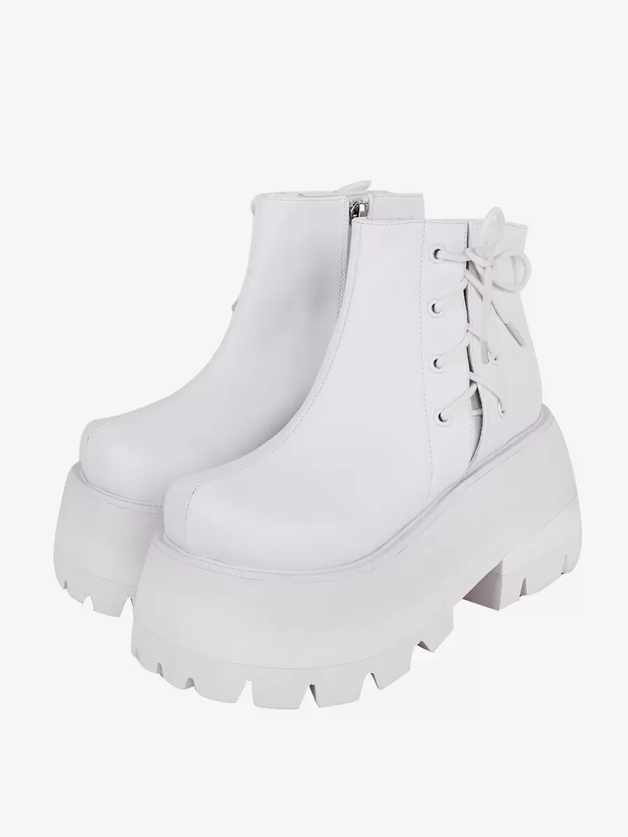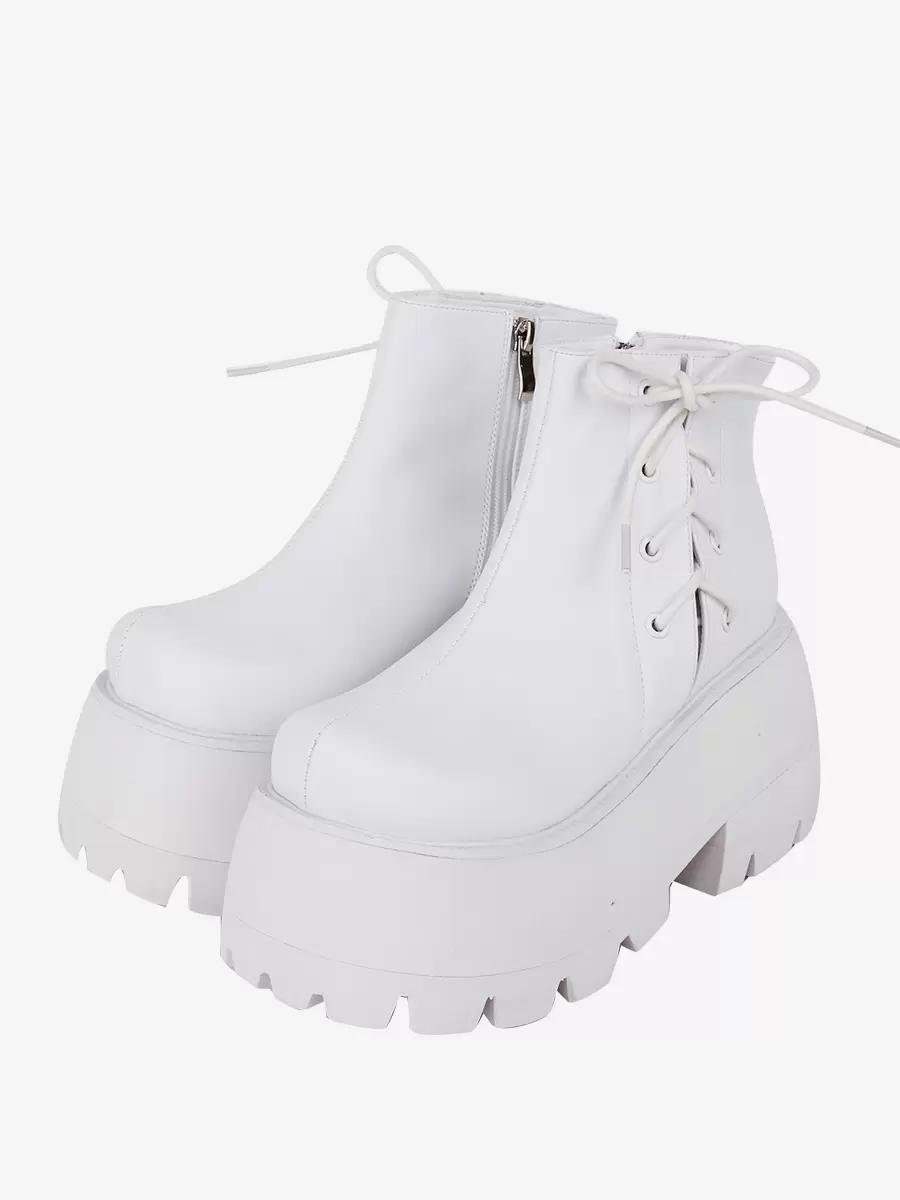 Gothic Lolita Footwear White PU Leather Wedge Heel Lolita Shoes