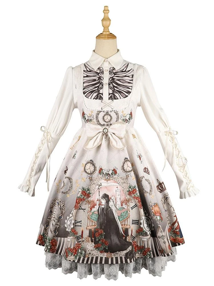 Be the first to review “Gothic Lolita JSK Dress Bows Sleeveless Skeleton Pattern Black Lolita Jumper Skirt” Cancel reply