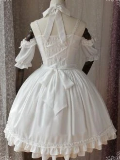 Gothic Lolita OP One Piece Dress Magic Tea Party Ruffles Bows Printed Chiffon Short Sleeve Black Lolita Dresses