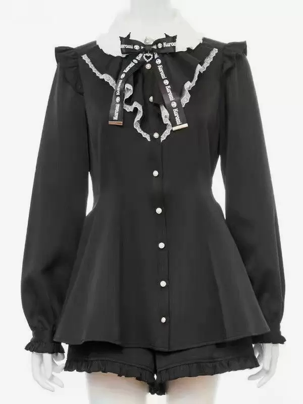 Gothic Lolita Outfits Black Ruffles Long Sleeves Pants Top Bowknot