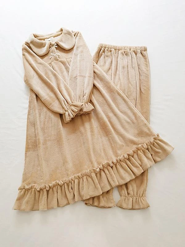 Gothic Lolita Outfits Light Brown Bows Ruffles Long Sleeves Pants Top