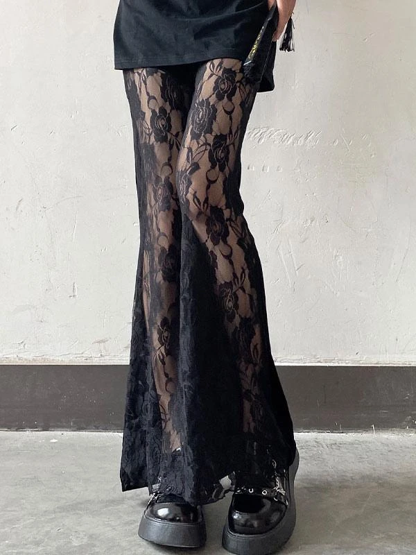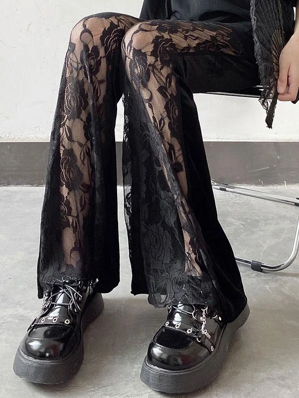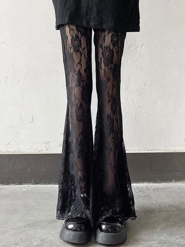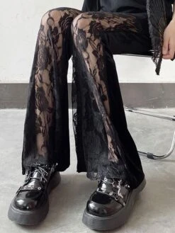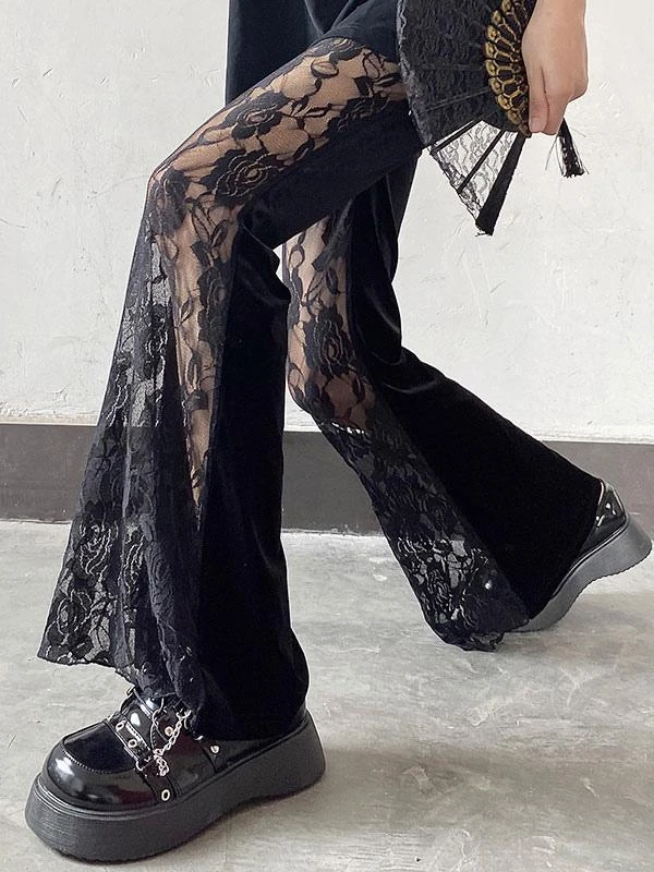 Gothic Lolita Pant Black Lace Flared Lolita Trousers