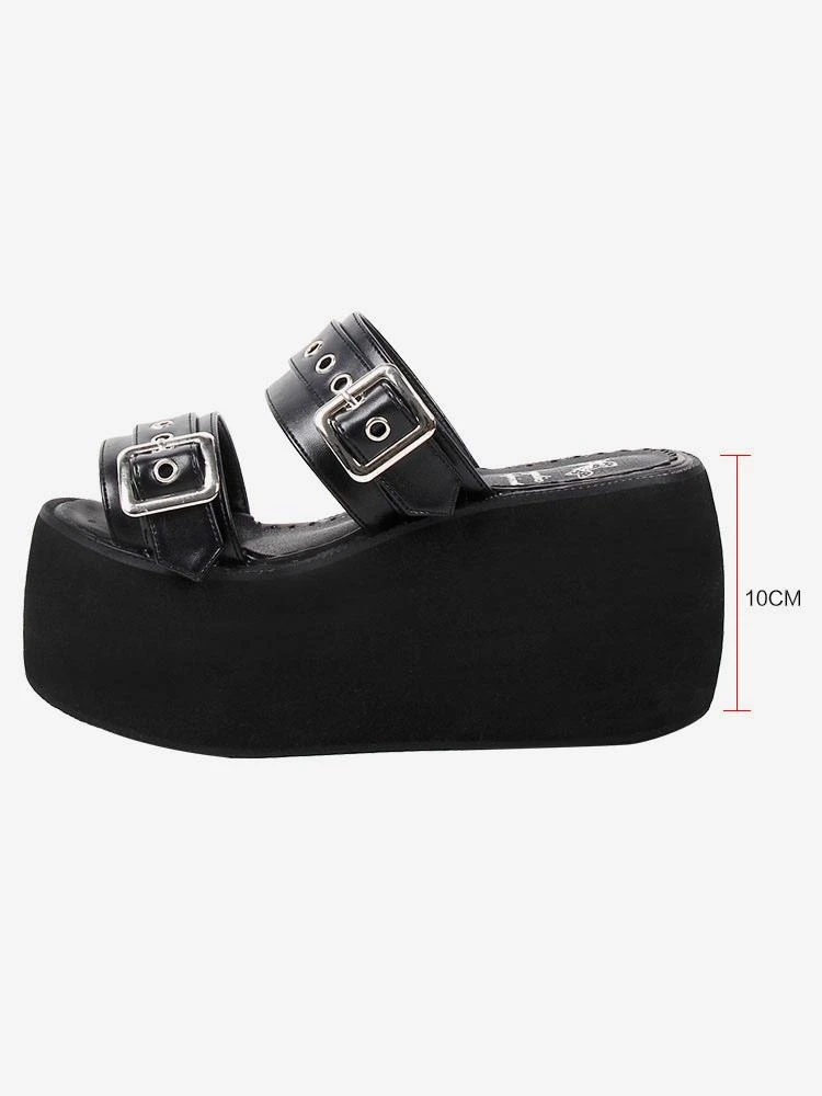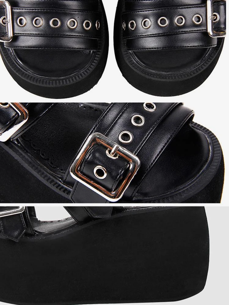 Gothic Lolita Sandals Rivets Open Toe PU Leather Black Lolita Summer Shoes