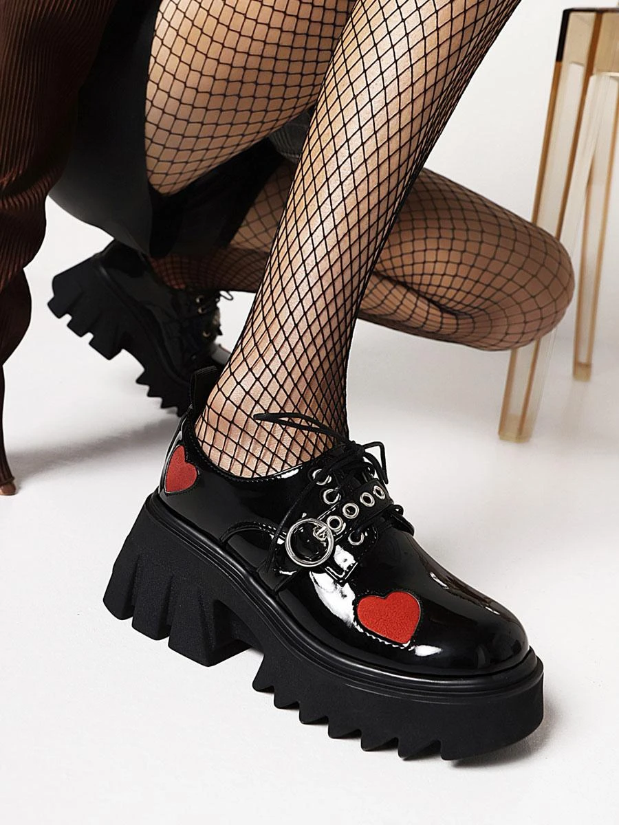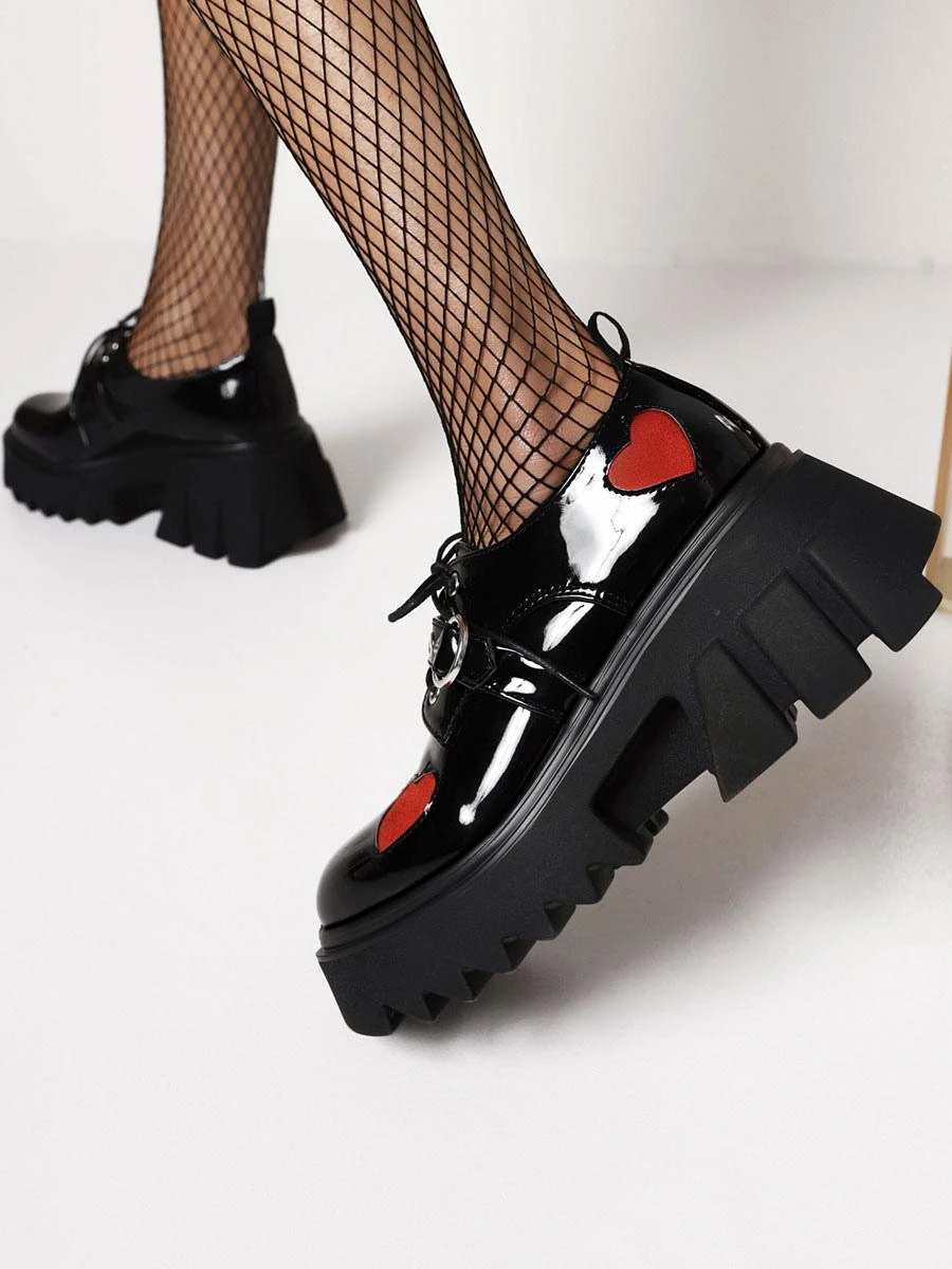 Gothic Lolita Shoes Heart Round Toe PU Leather High Heel Platform Shoes