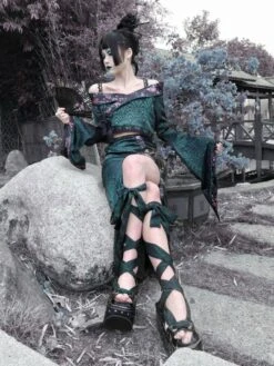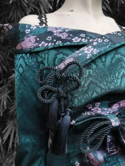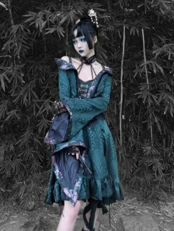 Gothic Lolita Top Polyester Lace Fringe Floral Print Cardigan Long Sleeve Dark Green Lolita Shirt