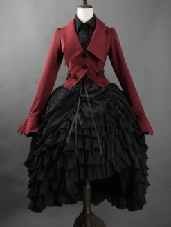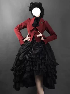 Gothic Ouji Lolita Coats Red Lace Up Polyester Overcoat Coat Spring Lolita Outwears