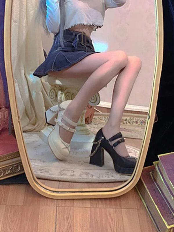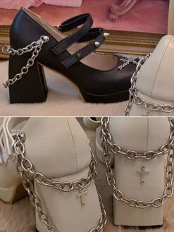 Be the first to review “Gothic Shoes Y2K Two Tone Cross Chain Square Toe Black Chunky Heel Lolita Shoes” Cancel reply