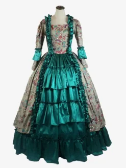 Green Retro Costumes Ruffles Polyester Floral Print Dress Women’s Marie Antoinette Costume Retro Tunic Party Prom Dress