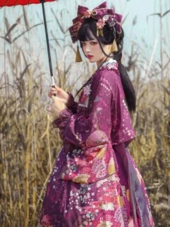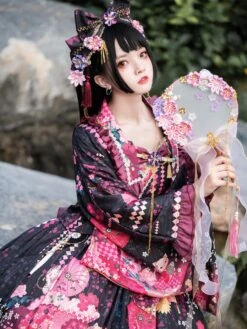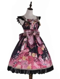 Japanese Style Lolita Dress Floral Print Sleeveless Bowknot Kimono Lolita JSK Dress With Headwear
