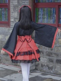 Japanese Style Maid Lolita Costumes Lolita Dresses Polyester Ruffles Kimono Long Sleeves Dress
