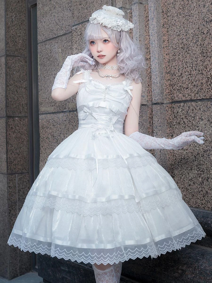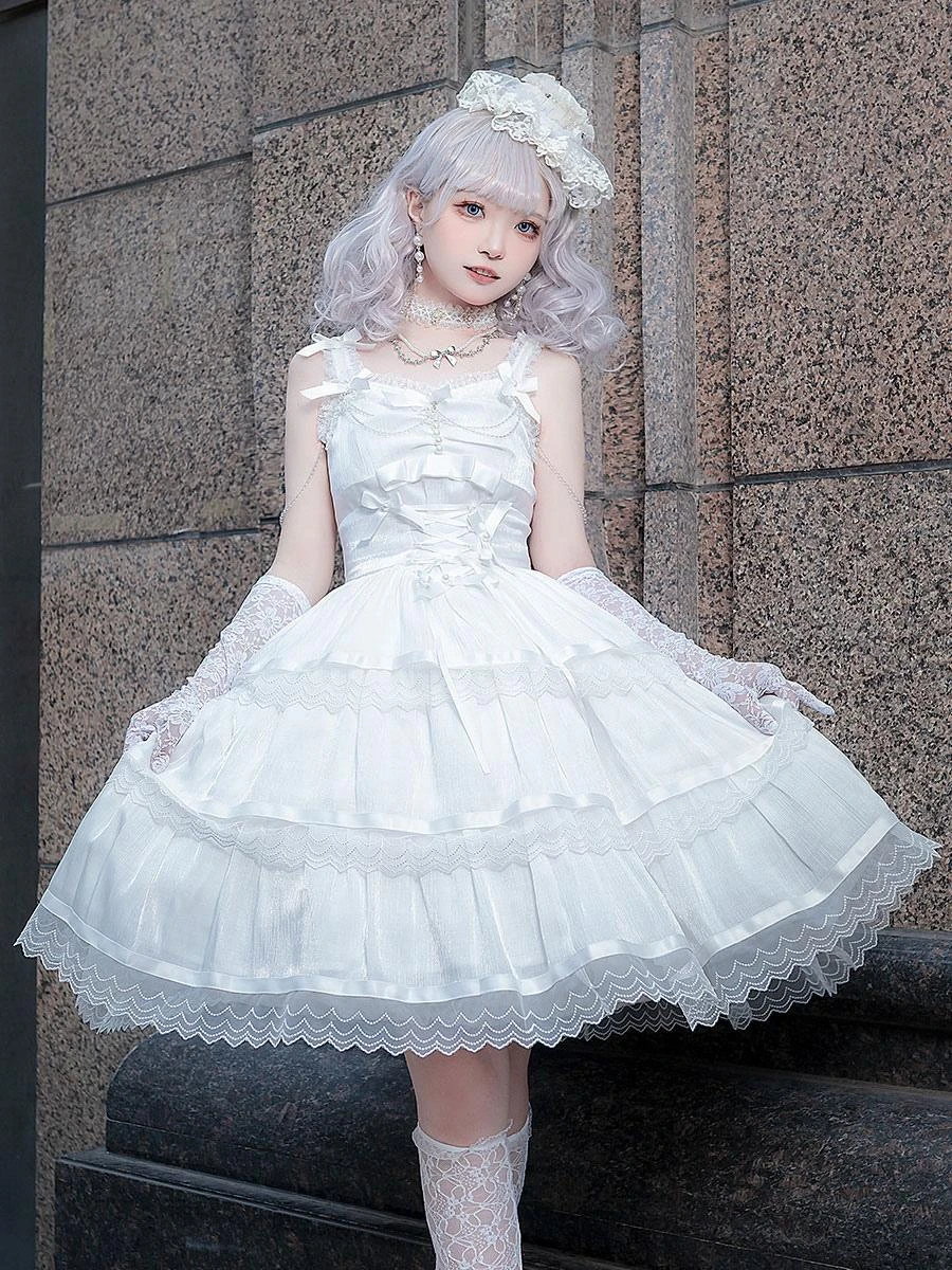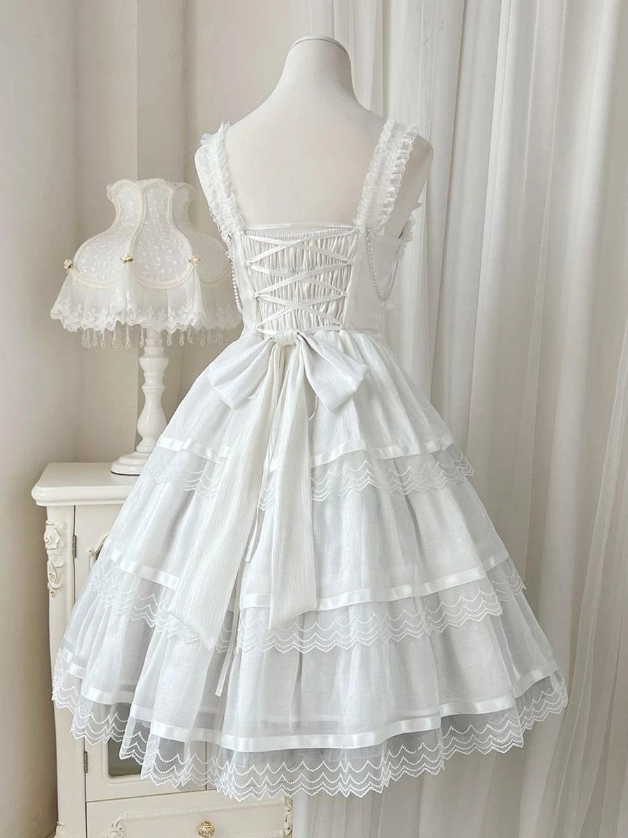 JSK Gothic Lolita Dresses Ruffles Chains White White