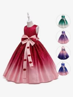 Kids Dress Princess Party Dress Flowers Sleeveless Gradient 5 Colors Flower Girl Dress