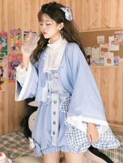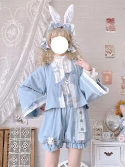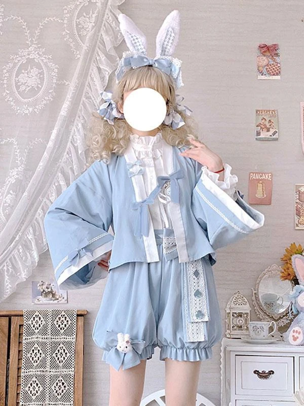 Kimono Lolita Coats Light Sky Blue Bows Polyester Overcoat Coat Summer Lolita Outwears