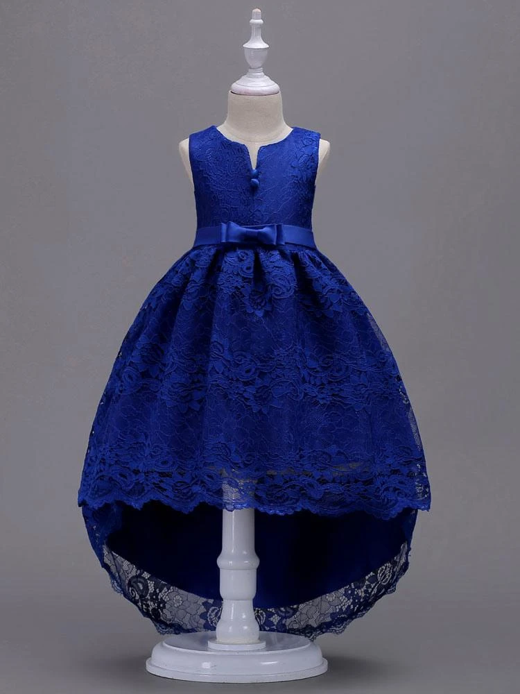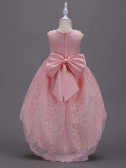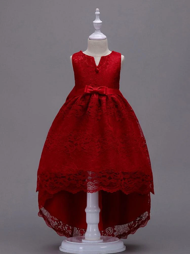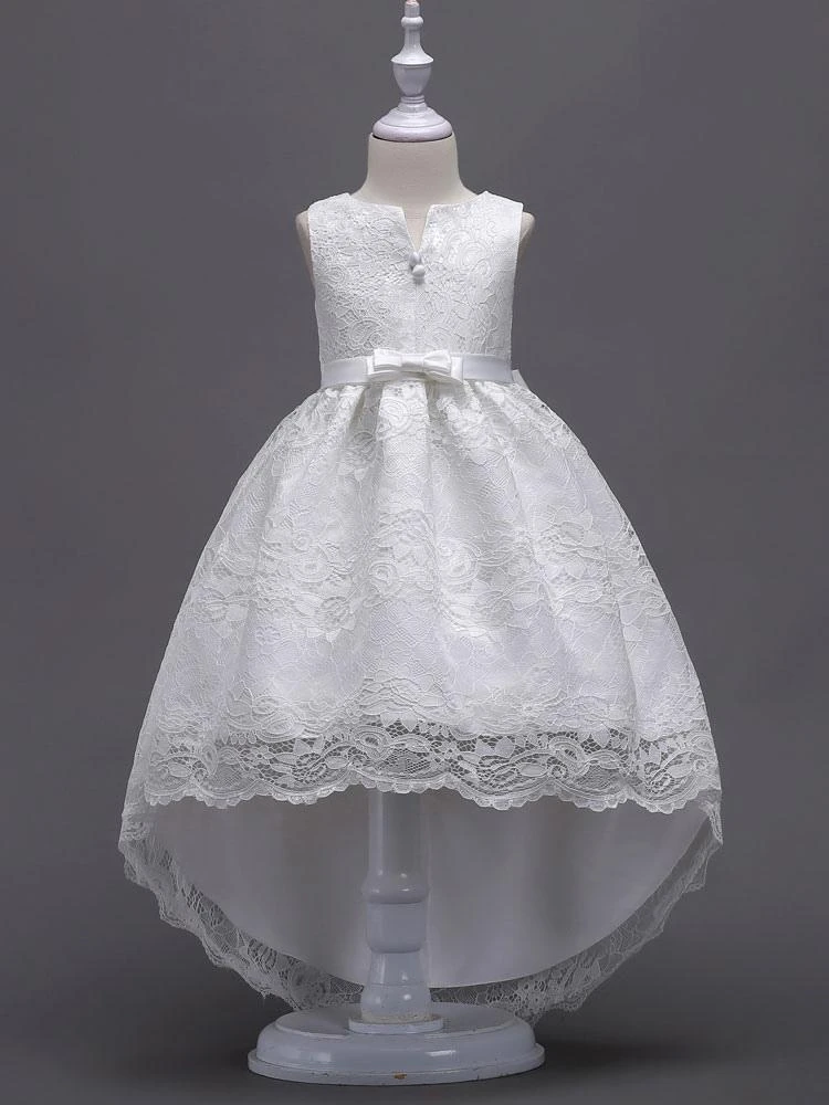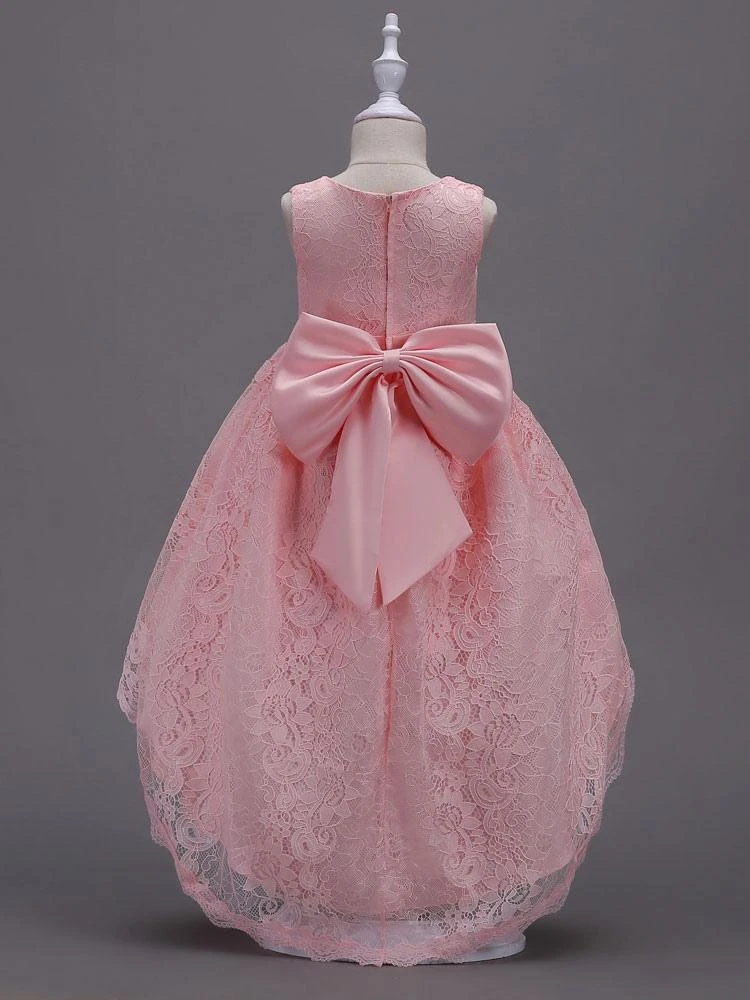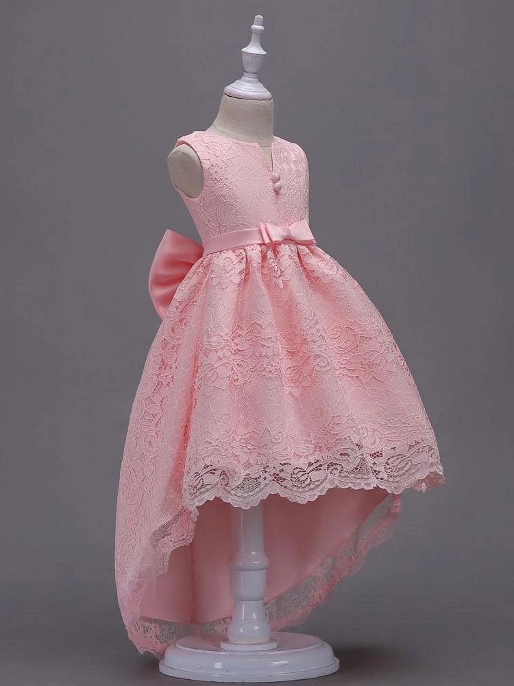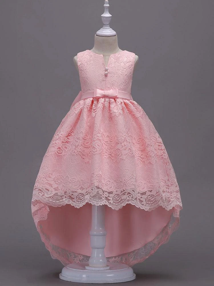 Lace Flower Girl Dresses Pink High Low Ball Gowns Sleeveless Bow Sash Princess Party Dresses