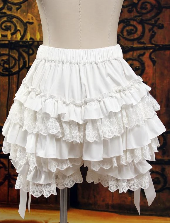 Lolita Bloomers Layered Ruffles Lace Trim Bow Ribbon