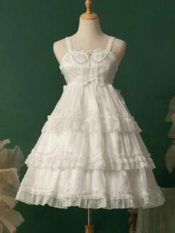 Lolita Dresses Tea Party Style Lolita Skirt Lace Sleeveless Polyester Sweet White