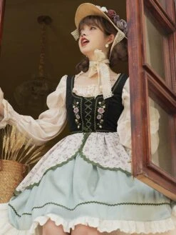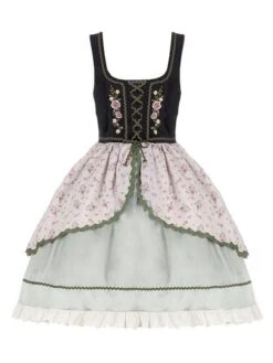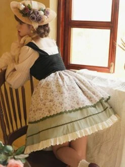 Lolita Dresses Tea Party Style Lolita Skirt Ruffles Sleeveless Polyester Pastoral Style Floral Print Light Green
