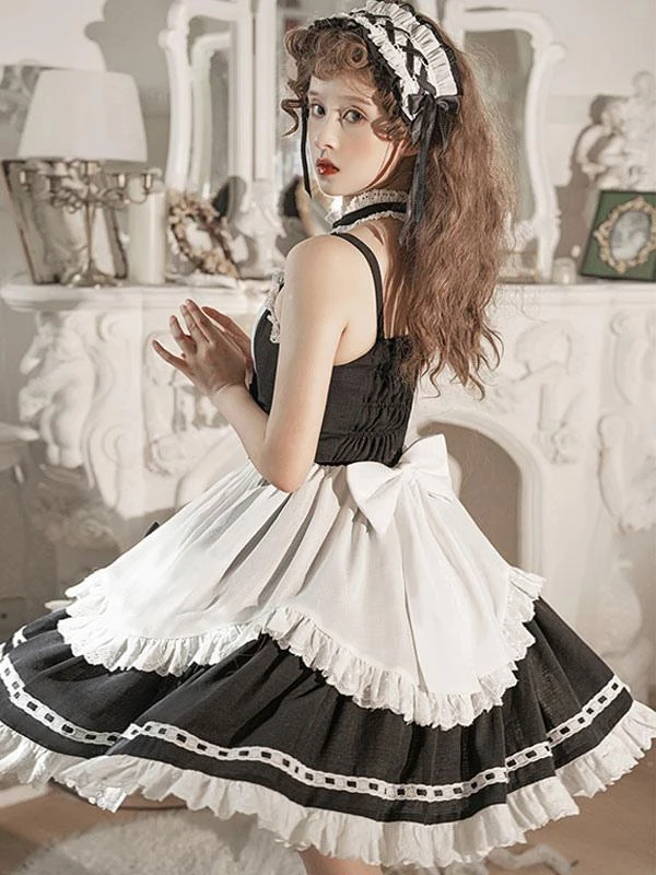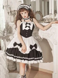 Lolita Dresses Tea Party Style Lolita Skirt Ruffles Sleeveless Polyester Sweet Black