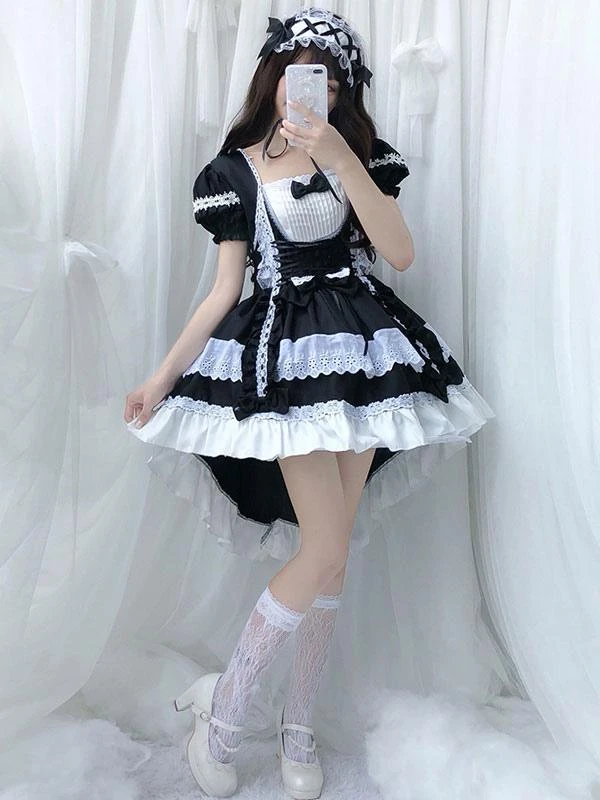 Lolita OP Dress Maid Two-Tone Black Ruffles Lolita One-Piece Dresses