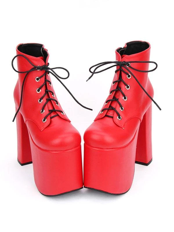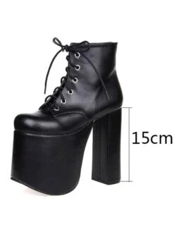 Be the first to review “Lolitashow Black Lolita Booties Chunky Heel Platform Round Toe Lace Up Lolita Short Boots” Cancel reply
