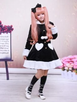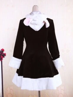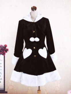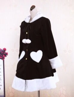 If you are looking for a nice dressy coat with just a touch of whimsey this winter, this one is a fun choice. It is made from a nice black wool and features a fur-lined hood with fun bunny ears sewn on. It also has fur heart shaped accents, fur cuffs and a wide band of fur trim around the bottom edge. The front of the coat features a button down closure made from handsome gold buttons that add a nice elegant touch to the design. The neutral colors used in the coat make it easily coordinated with most outfits. This would make a fun addition to anyone’s winter wardrobe!