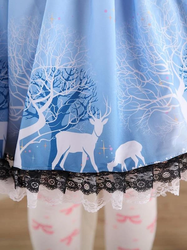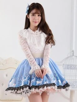 Be the first to review “Lolitashow Blue Short Lolita Skirt Lace Trim Polyester Print” Cancel reply