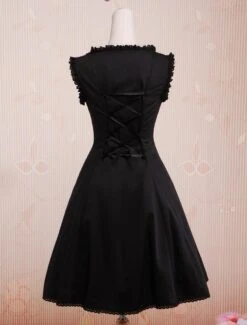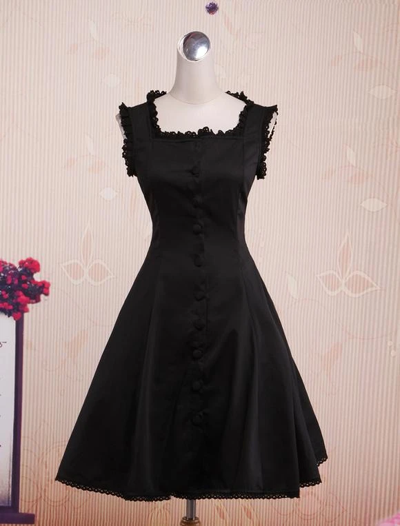 Lolitashow Classic Black Cotton Square Neck Lolita Jumper Skirt