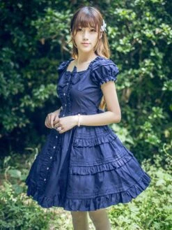 Lolitashow Classical Lolita Dress Layered Ruffles Lolita Dress Short Sleeves Lolita Op Dress With Bows