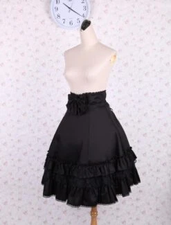 Black lolita skirt,features two tiers of ruffles at the bottom and bow decoration on the waist.Petticoat is included.