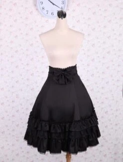 Black lolita skirt,features two tiers of ruffles at the bottom and bow decoration on the waist.Petticoat is included.